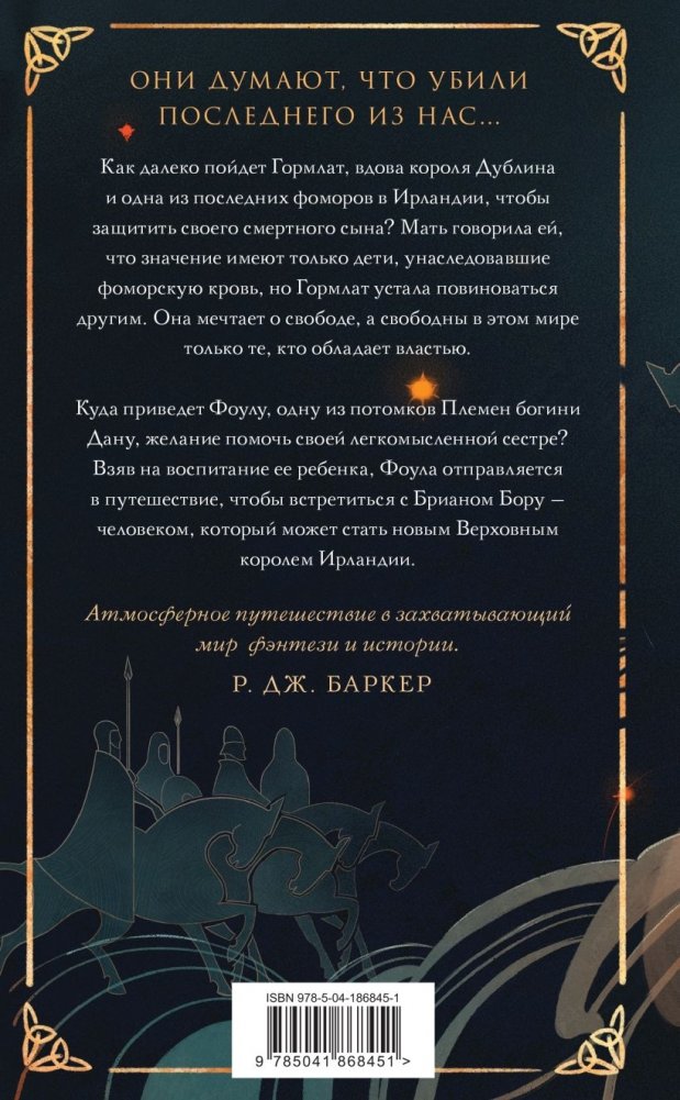 Гормлат — прекрасная вдова старого короля Дублина и одна из последних наследников крови фоморов в Ирландии. У них с братом есть последний шанс собраться с силами и отомстить: их извечный враг думает, что уже победил. Гормлат должна посадить своего смертного сына на трон Дублина, если хочет отомстить потомкам Туата Де Дананн… Или она сделает это ради свободы и любви к сыну?