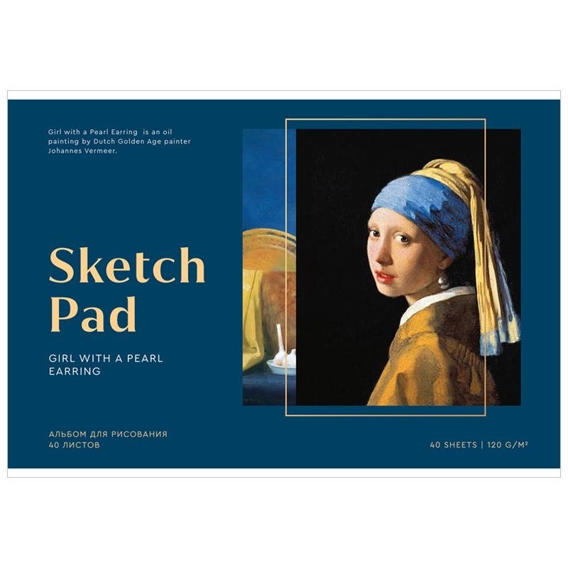 Альбом отлично подойдёт для рисования различными типами красок, фломастерами, цветными и чернографитными карандашами, гелевыми ручками. Дизайн обложки посвящен известной картине Яна Вермеера «Девушка с жемчужной серёжкой» и понравится ценителям искусства.