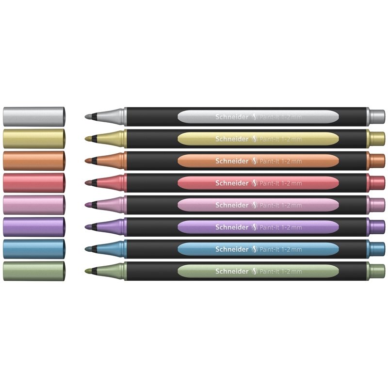 Набор капиллярных металлизированных ручек Schneider "Paint-It 020 " 8 цв., 1-2 мм, европодвес. Арт. ML02011502