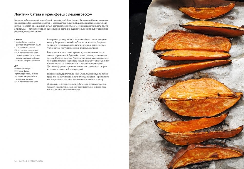 «Я не вегетарианец, и это важно подчеркнуть. Я упоминаю мясо и рыбу во вступлениях к рецептам, поскольку периодически о них думаю. Но это не значит, что мне их не хватает. Здесь я предлагаю вам десятки сытных, сбалансированных и питательных блюд — просто так уж вышло, что в них нет ни рыбы, ни мяса.