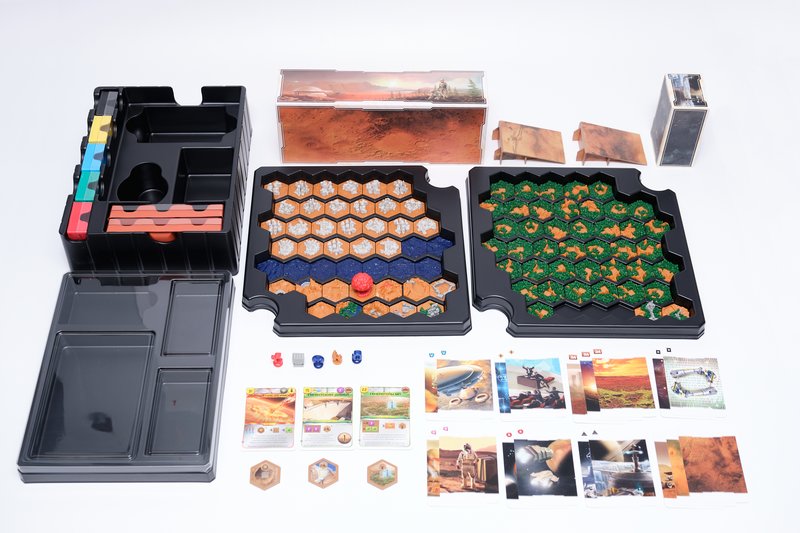 Для чего она нужна? Основное её предназначение – удобное хранения базовой игры и всех дополнений "Покорения Марса": с этим "биг боксом" можно забыть про разрозненное хранение компонентов во множестве коробок, теперь всё будет в одном месте. А это, между прочим, немаловажный плюс, поскольку подготовка к партии и сбор компонентов после игры будут происходить гораздо быстрее! Ещё в этот Big Box входят более 90 объёмных составных маркеров и жетонов, которые заменяют собой плоские картонные жетоны. Теперь процесс озеленения Марса визуализирован ещё более подробно и ярко! Настоящая услада для глаз.