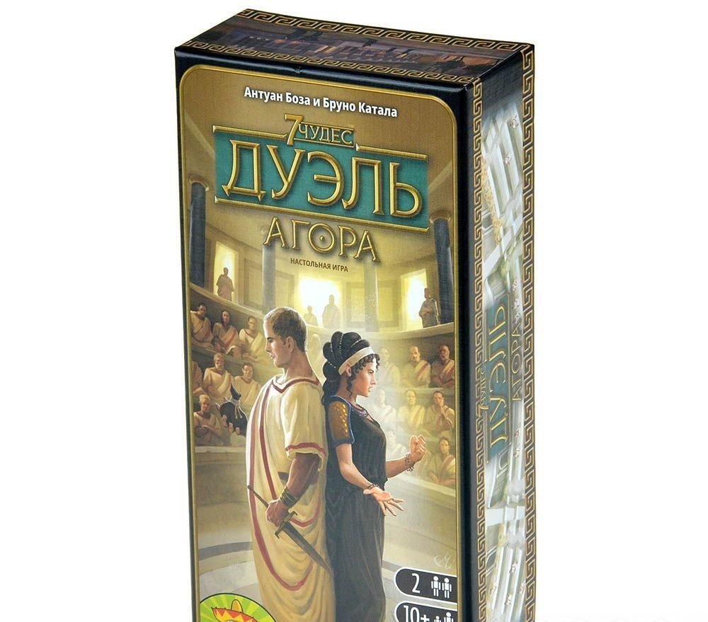 Дополнение "Агора" добавляет в игру "7 Чудес: Дуэль" сенаторов, которые оказывают воздействие на Сенат и ещё одну возможность победы – политическое превосходство. В здании Сената будут издаваться указы, которые непосредственно повлияют на вашу цивилизацию и достижение победы. Добивайтесь контроля над Палатами, склоняйте политиков к нужным решениям, устраивайте заговоры и перевороты, стройте здания и Чудеса Света, усиливайте армию и развивайте науку – всё на благо народа.