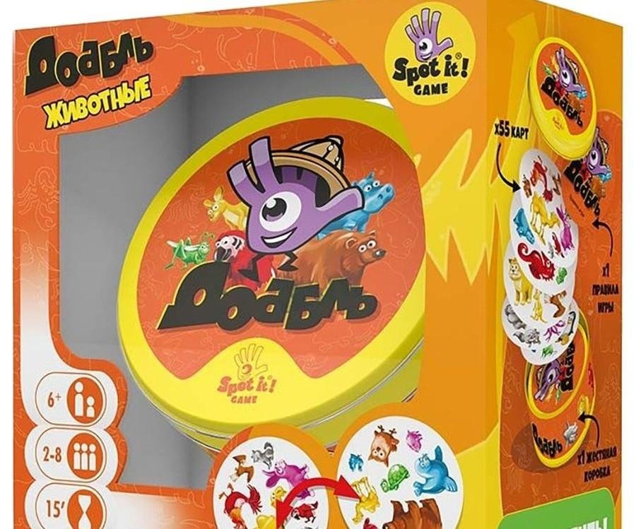 "Доббль: Животные" – это простая, весёлая и азартная игра на внимательность и скорость реакции, которая претерпела уже не одну итерацию, и всё ещё остаётся популярной настолкой! Как бы ни менялось оформление игры "Доббль", в основе её лежит всегда один и тот же принцип – найти на двух разных карточках совпадения быстрее остальных игроков. Именно за эту простоту правил игра и обрела широкую популярность. Посудите сами: легко объяснить детям, ещё и помогает развить внимательность и реакцию, а соревновательный дух поддерживает азарт в каждом игроке. Как можно понять из названия, в этой версии игры вам предстоит искать на карточках совпадающих животных. Нашли двух медведей? Кричите! И пусть победит внимательнейший!