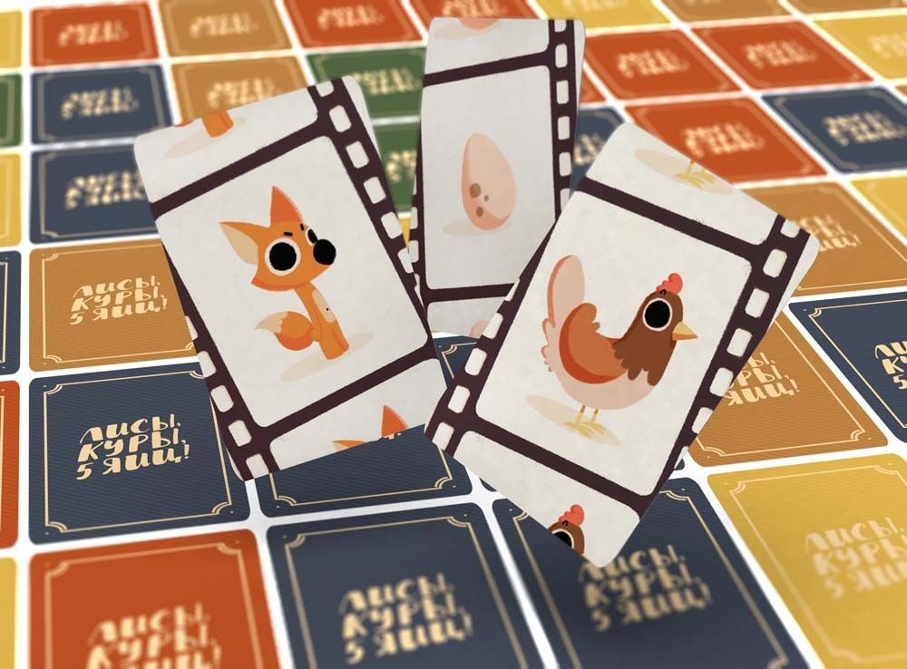 В быстрой и весёлой настольной игре "Лисы, куры, 5 яиц!" все за столом играют одновременно, рассматривая кадры киноленты, которая состоит из карт. Задачей игроков является внимательно следить за действиями героев на разыгрываемых картах и остановить съёмку, как только в кадре окажется пятое яйцо.