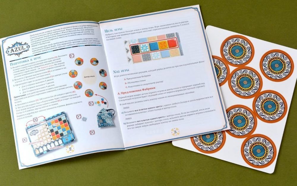 Перед вами уже знакомый многим классический "Азул" но в компактном исполнении. Теперь у вас есть возможность взять любимую игру с собой и разложить её где вам захочется!