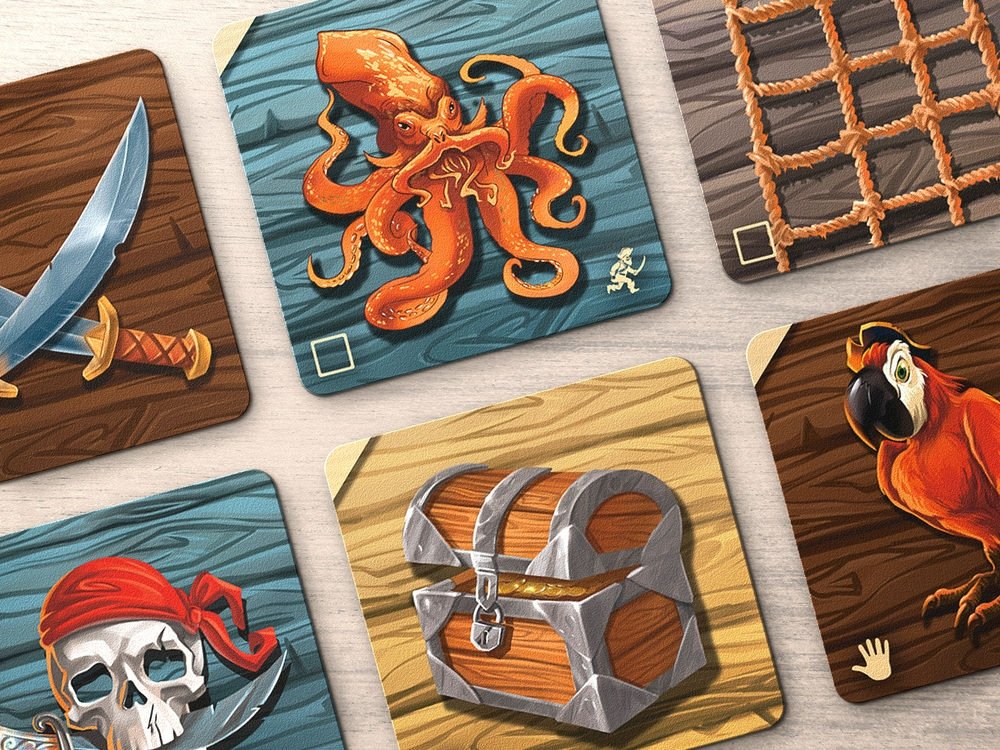 - 4 набора по 3 фишки пиратов