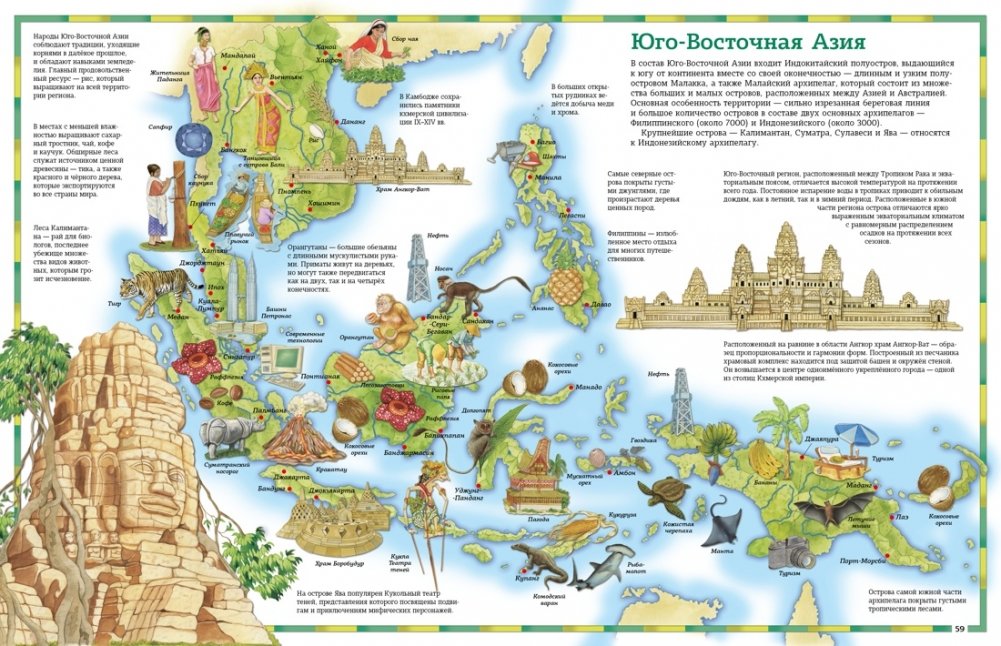 Листая этот прекрасно иллюстрированный атлас, вы совершите увлекательное кругосветное путешествие: исследуете самые отдалённые уголки планеты, узнаете множество любопытных фактов о достопримечательностях разных стран, оцените красоту уникальных природных объектов и необычных древних сооружений. На картах отмечены полезные ископаемые, памятники архитектуры, а также животные, обитающие в разных природных зонах.