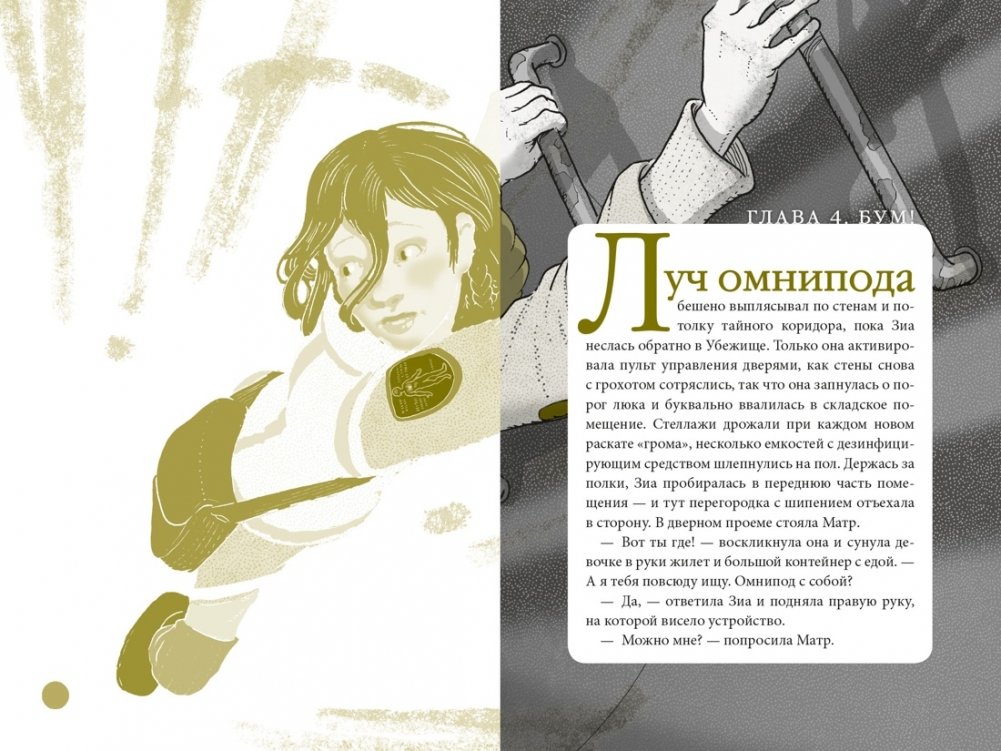 Зиа Девять – обычная девочка, которая живет в оснащенном по последнему слову техники доме, именуемом Убежище, и воспитывается многофункциональным роботом Матр. А еще Зиа Девять ни разу не выходила на поверхность, не чувствовала, как на кожу падают капли дождя, охлаждая ее в зной, – разве это не то же самое, что стоять под душем? – и не встречала никого, кто был бы похож на нее, – то есть человека. А еще у Зии Девять есть секрет – загадочная УдивЛа. Именно в это слово сложились буквы на странной «плитке», найденной в одном из секретных коридоров Убежища. Зиа и не подозревает, что совсем скоро ей предстоит выяснить, кто же эти счастливая девочка и ее друзья, изображенные на УдивЛе, а для этого ей придется пуститься в невероятно захватывающее путешествие, полное новых впечатлений, встреч и опасностей.