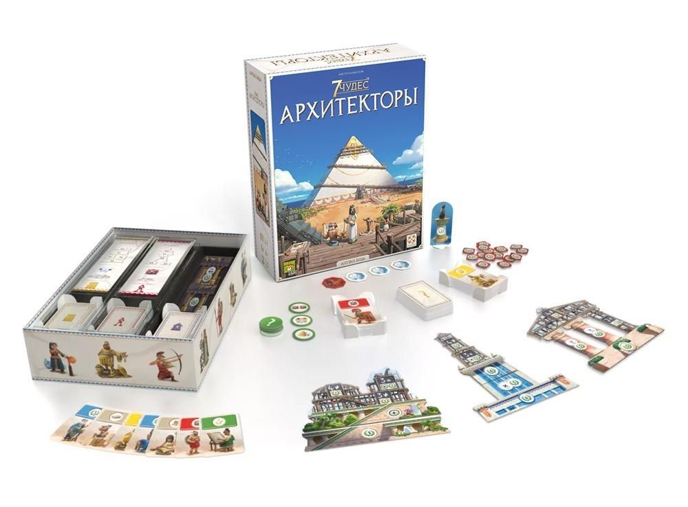 "7 Чудес: Архитекторы" – новая версия хита "7 чудес", в которой вы возьмёте на себя роли великих архитекторов. В начале игры вам следует выбрать, какое из 7 чудес света вы будете возводить – от этого зависит, каким будет дальнейший игровой процесс. Каждое чудо света обладает не только собственной механикой, но и уникальной колодой: в свой ход вы сможете брать карты как из собственной колоды, так и из колод соседей – таким образом вы можете получать ресурсы, военную мощь и монеты. Возведите своё чудо света, прославьте державу и впишите своё имя в историю мира!