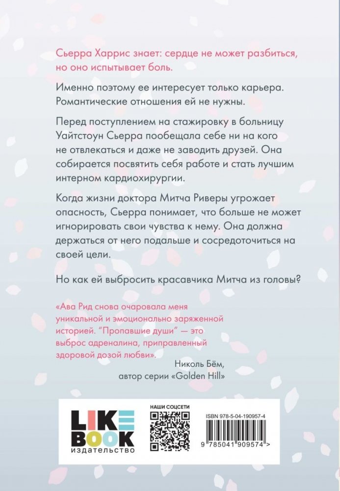 «Пропавшие души» — вторая книга цикла, действие которого разворачивается в больнице Уайтстоун. Герои этой серии не только будут спасать жизни пациентов, но и заводить новых друзей и влюбляться.