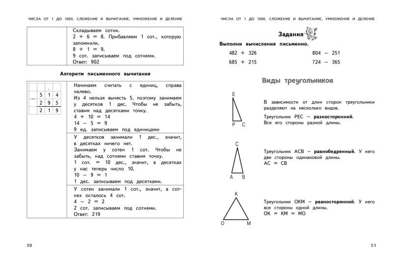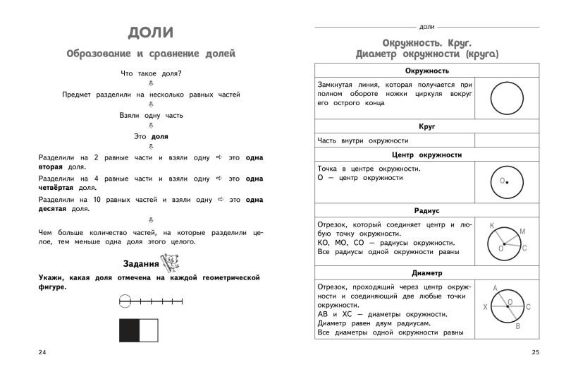 В пособии представлены все темы школьного курса математики за 3 класс. Пособие будет полезно для систематизации знаний учащихся, дополнительной проработки сложных тем, подготовки к самостоятельным и контрольным работам. Это особенно актуально для школьников, испытывающих трудности в освоении и запоминании больших объёмов материала. Кроме того, ученики получат первый практический опыт работы со справочной литературой — это пригодится им не только в период учёбы, но и в повседневной жизни. Современное и удобное в использовании пособие разработано с учётом последних требований ФГОС начального общего образования.