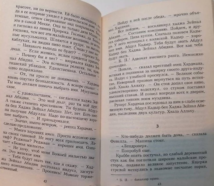 Крушение британского колониального режима в Maнули меняет судьбы четырех белых мужчин, которые не в силах изменить неумолимый ход событий. Крупный чиновник Толбот утешается неумеренной страстью к еде. Виктор Краббе поглощен чувством вины перед погибшей первой женой и не замечает, как теряет вторую. Юрист Хардман вынужден принять ислам и жениться на богатой вдове-малайке. А священник Лафорг мечтает обратить китайцев в католическую веру. О предыстории судеб англичан Виктора и Фенеллы Kpaфбе рассказано в романе "Время Тигра".