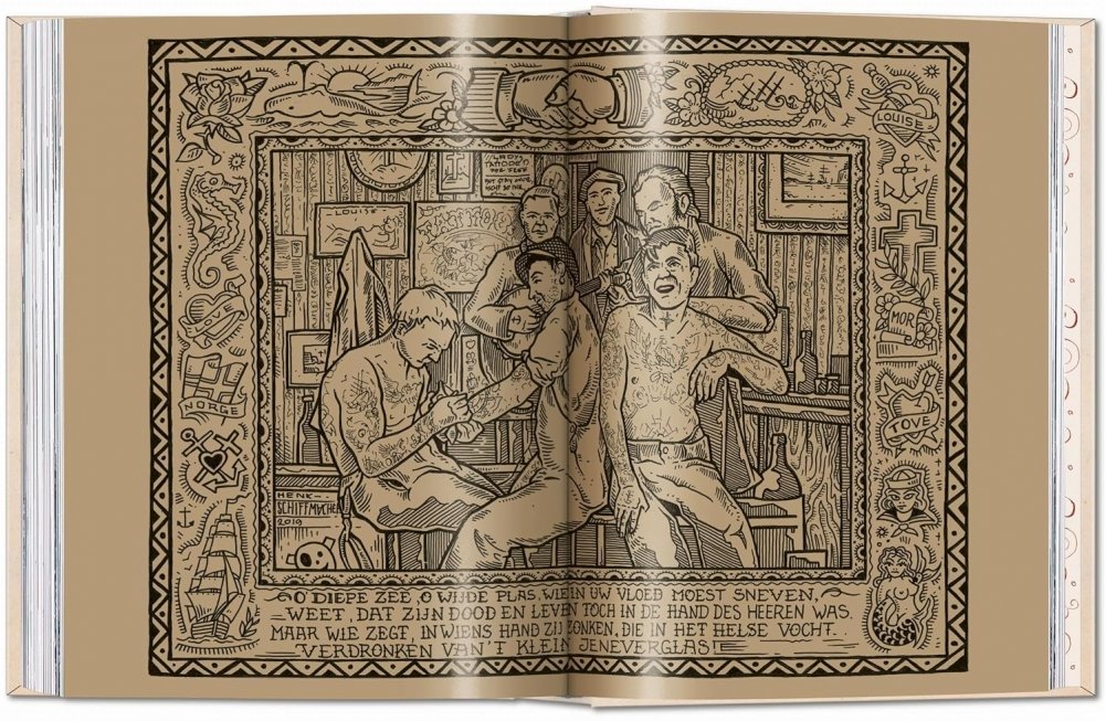 For the last forty years, Henk Schiffmacher has poured his heart and soul into his collection, amassing tattoo drawings, designs, photographs, and artifacts from around the world. Each of the book’s chapters features many never-before-seen highlights from this collection and includes lithographs, etchings, tattooing instruments, original drawings, and tattoo designs known in the business as flash, among them extremely rare vintage flash sheets from major players in early Western tattooing.