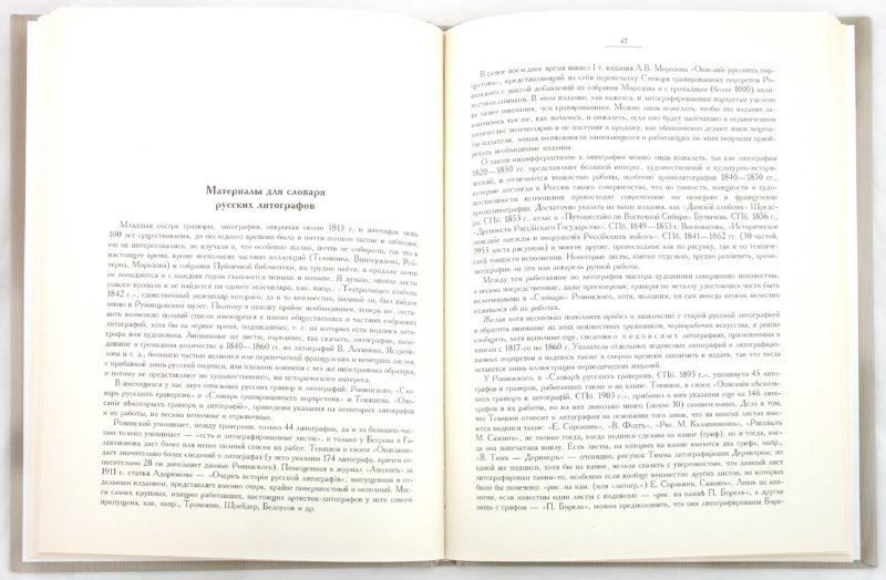 В дополнении к "Словарю русских гравюр" Д.А.Ровинского и "Описанию нескольких гравюр и литографий" Е.Н.Тевяшова автор продолжает список русских граверов и литографов, дает описание гравюр, в том числе книжных. В издании также представлены изображения 43 гравюр русских мастеров.