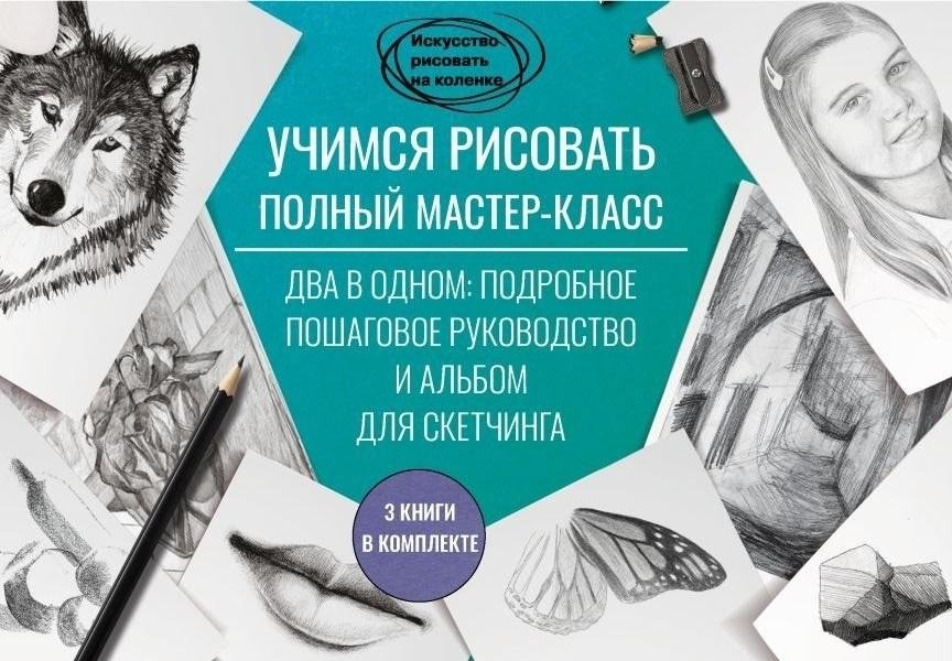 Комплект состоит из 3-х книг. Это удобные скеттчбуки из серии "Искусство рисовать на коленке". Подробное пошаговое руководство-альбом с доступным теоретическим материалом и пустыми страницами для рисования. Верстка "лежа" для удобного рисования на коленях.