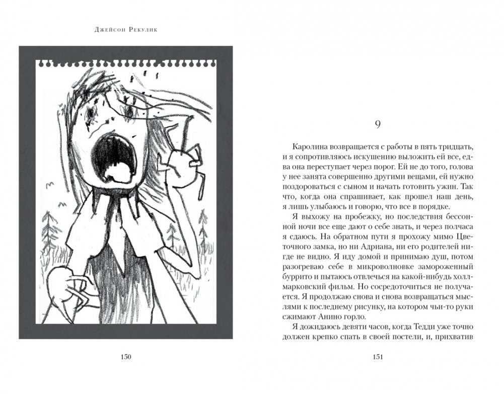 Когда твое прошлое — груда развалин и ты, чудом выкарабкавшись из-под них, даже не представляешь себе, как жить дальше, едва ли стоит рассчитывать на то, что судьба преподнесет тебе роскошный подарок. Однако с Мэллори Куин случилось именно это. Молодая спортсменка после тяжелейшей жизненной катастрофы получает идеальную возможность начать жизнь с чистого листа. Она теперь нянька при пятилетнем ребенке в красивом, тихом, уютном городке. Тедди — славный малыш, явно талантливый; он очень любит рисовать. Но с его рисунками происходит нечто мистическое: они становятся все более жуткими и сложными, и вот уже среди них сцена, изображенная как будто совсем не детской рукой: в лесу мужчина куда-то тащит безжизненное тело женщины. Что хотят сказать все эти картинки? Кто разговаривает через них? Заинтригованная и встревоженная, Мэллори пытается разгадать зловещую тайну…