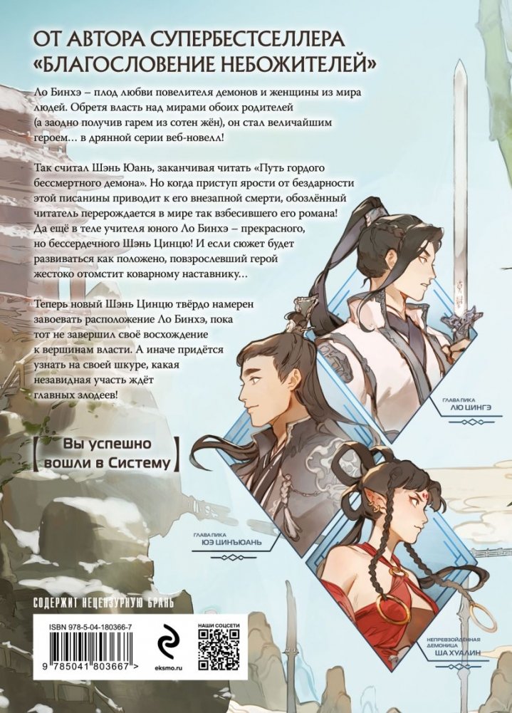 Так считал Шэнь Юань, заканчивая читать последнюю главу "Пути гордого бессмертного демона". Но когда приступ ярости от бездарности этой писанины приводит к его внезапной смерти, обозленный читатель перерождается в мире так взбесившего его романа! Да ещё в теле учителя юного Ло Бинхэ – прекрасного, но жестокого Шэнь Цинцю! Он очень силён, но если сюжет будет развиваться как положено, однажды коварного наставника постигнет ужасная кара за козни, учиненные маленькому герою…