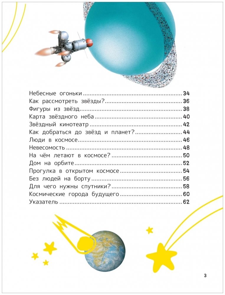 Книга знакомит детей с бескрайним миром космоса. Они узнают, что такое Вселенная, галактики, туманности, Солнечная система, планеты, звезды, кометы. Перед ребенком откроется увлекательный мир космической техники, подготовки космонавтов для полетов и жизни космонавтов на МКС.Энциклопедия предназначена для совместного чтения родителей и детей. Тексты, набранные крупно и маркированные флажком, читает ребенок, а тексты на прямоугольных и круглых плашках — взрослый.