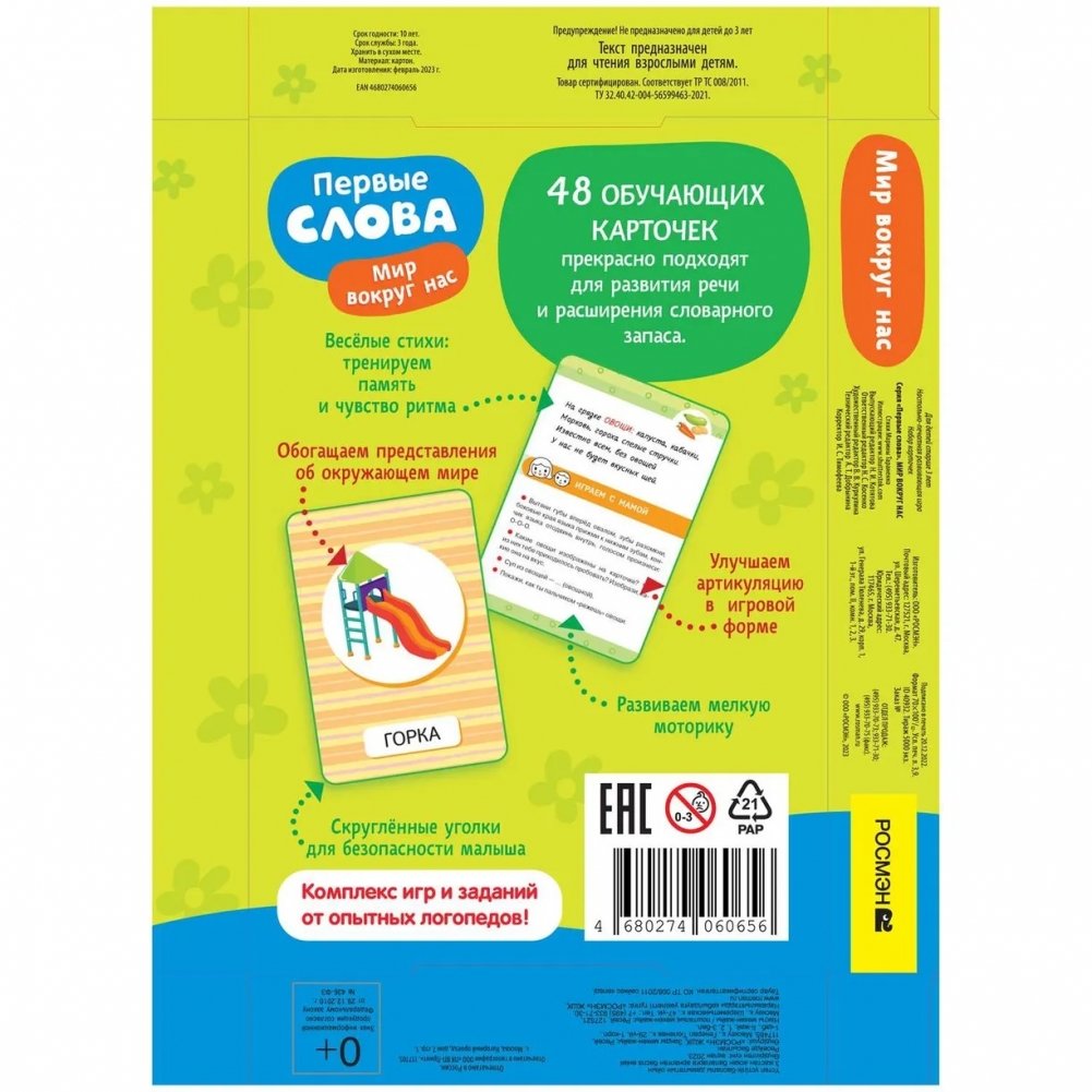 48 обучающих карточек прекрасно подходят для развития речи и расширения словарного запаса.- Весёлые стихи: тренируем память и чувство ритма- Улучшаем артикуляцию в игровой форме- Развиваем мелкую моторику- Обогащаем представления об окружающем мире- Скругленные уголки для безопасности малышаКомплекс игр и заданий от опытных логопедов!