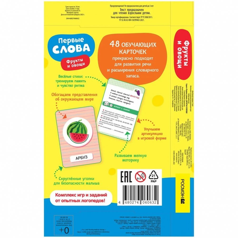 48 обучающих карточек прекрасно подходят для развития речи и расширения словарного запаса.- Весёлые стихи: тренируем память и чувство ритма- Улучшаем артикуляцию в игровой форме- Развиваем мелкую моторику- Обогащаем представления об окружающем мире- Скругленные уголки для безопасности малышаКомплекс игр и заданий от опытных логопедов!