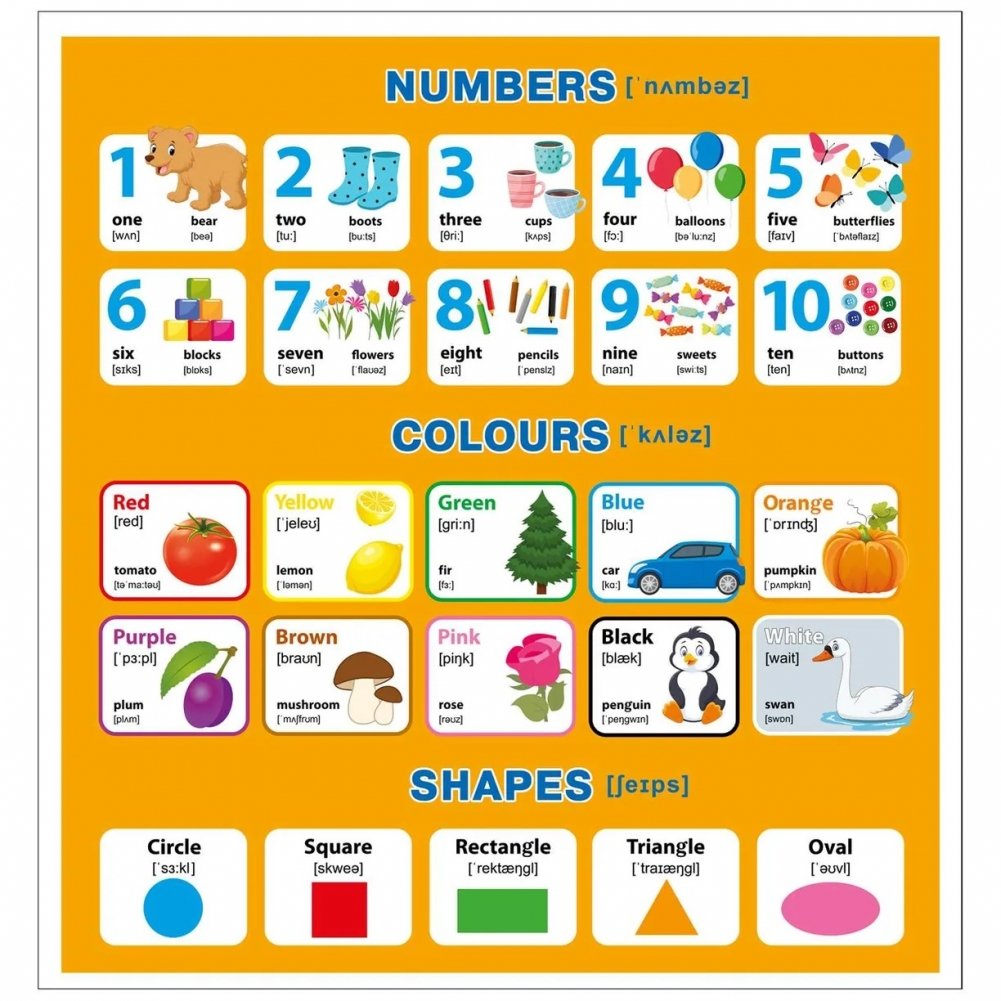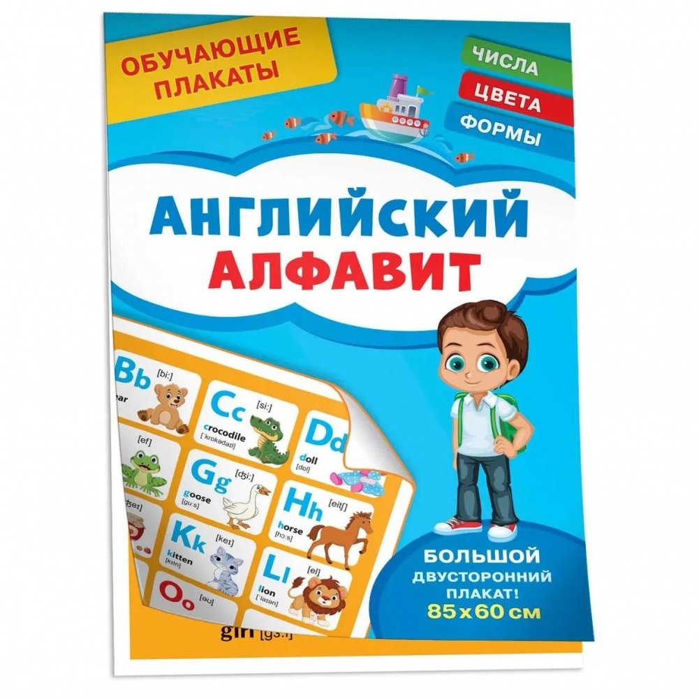 Серия «Обучающие плакаты» состоит из 4 больших двусторонних плакатов, которые являются необходимыми наглядными пособиями для детей дошкольного возраста.С нашими плакатами ребенок запомнит буквы и звуки русского языка, научится считать от 1 до 20, сможет решить задачи на сложение и вычитание, выучит названия форм и таблицу умножения.Также наши плакаты помогут ребенку запомнить английский алфавит, научиться называть по-английски цифры от 1 до 10, формы и цвета.Просто выберите нужную на начальном этапе обучения сторону плаката и повесьте в любое удобное вам и ребенку место, где вы будете заниматься. А затем переверните!Наши «Обучающие плакаты» также можно использовать как наглядные пособия в детском саду и начальной школе.