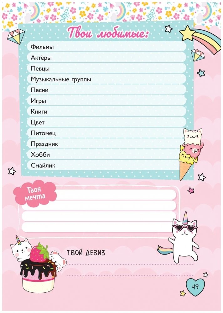 Мой милый дневничок с анкетами
