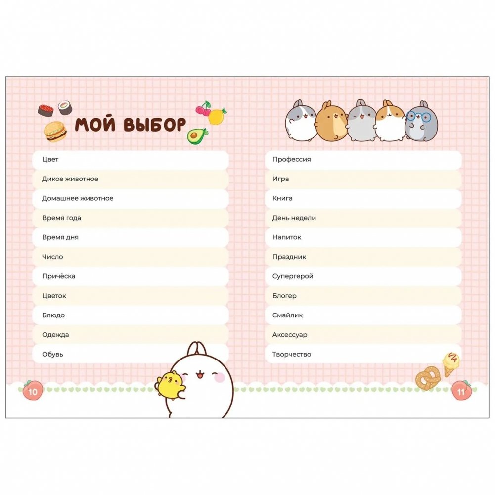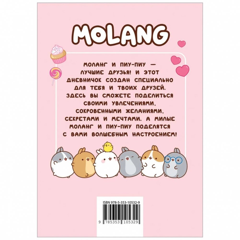 Моланг и Пиу-Пиу - лучшие друзья! И этот дневничок создан специально для тебя и твоих друзей. Здесь вы сможете поделиться своими увлечениями, сокровенными желаниями, секретами и мечтами. А милые Моланг и Пиу-Пиу поделятся с вами волшебным настроением! Серия дневников с опросами, тестами, заданиями, целями, для личных записей, дружеских пожеланий и любимых фотографий.