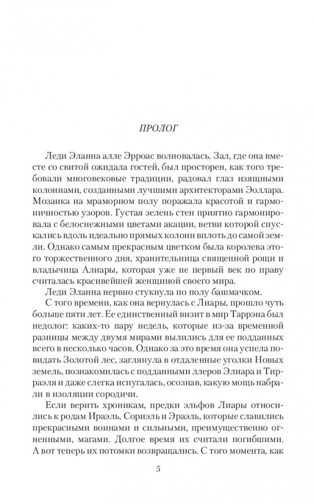 Алиара - древний мир, в котором уже много веков царят покой и процветание. Однако приход чужаков грозит разрушить эту идиллию. Изгнанники, отступники, безумцы… Как только в свое время не называли потомков Л'аэртэ. И вот теперь они возвращаются, неся с собой новые знания, новую магию и массу других опасностей, к которым Алиара оказывается не готова. Впрочем, для Таррэна и его родных этот визит приносит не меньше тревог. Но, что самое важное, он приводит к воистину судьбоносной встрече. С собственным прошлым, древними тайнами и не менее древним существом, которого на Алиаре почитают как бога.