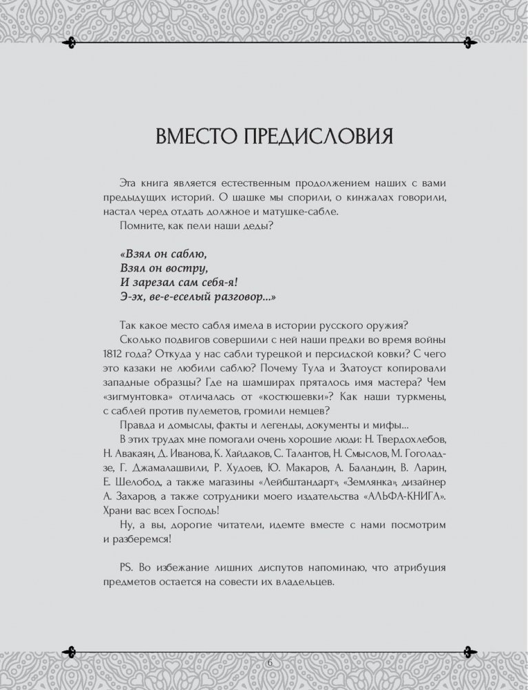 После книг о шашке и кинжале было бы просто невежливо не написать о таком прекрасном и легендарном оружии, как Сабля. Ведь сколько чудесных тайн, преданий и мифов может рассказать нам история оружия.Почему казаки не любили саблю? Мог ли кавказский мастер всего за один сабельный клинок купить целый дом? Сколько покушений было на создателя русского булата полковника Аносова? Чем "костюшевка" отличалась от "зигмунтовки"? Как наши туркмены с дедовскими саблями громили немцев?Интересно? Тогда откроем первую страницу - и вперед…