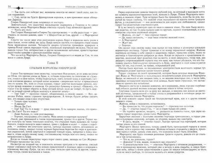 Александр Дюма был и остается одним из самых популярных французских писателей во всем мире. Он из тех писателей, книги которых целые поколения начинают читать с детства и перечитывают до самой старости. В своих лучших произведениях Дюма остается великолепным, увлекательным рассказчиком, мастером интриги и композиции, создателем навсегда запоминающихся героических характеров. К таким произведениям относится и трилогия о Генрихе Наваррском: "Королева Марго", "Графиня де Монсоро", "Сорок пять" - сюжетная линия которой объединена историей борьбы Генриха Наваррского за французский престол. Трилогия впервые издана на русском языке в одном томе. Содержание Королева Марго (переводчик: Евгений Корш) c. 7-344 Графиня де Монсоро (переводчики: Н. Бутырина, Валерий Столбов) c. 345-838 Сорок пять (переводчики: А. Кулишер, Надежда Рыкова) c. 839-1262