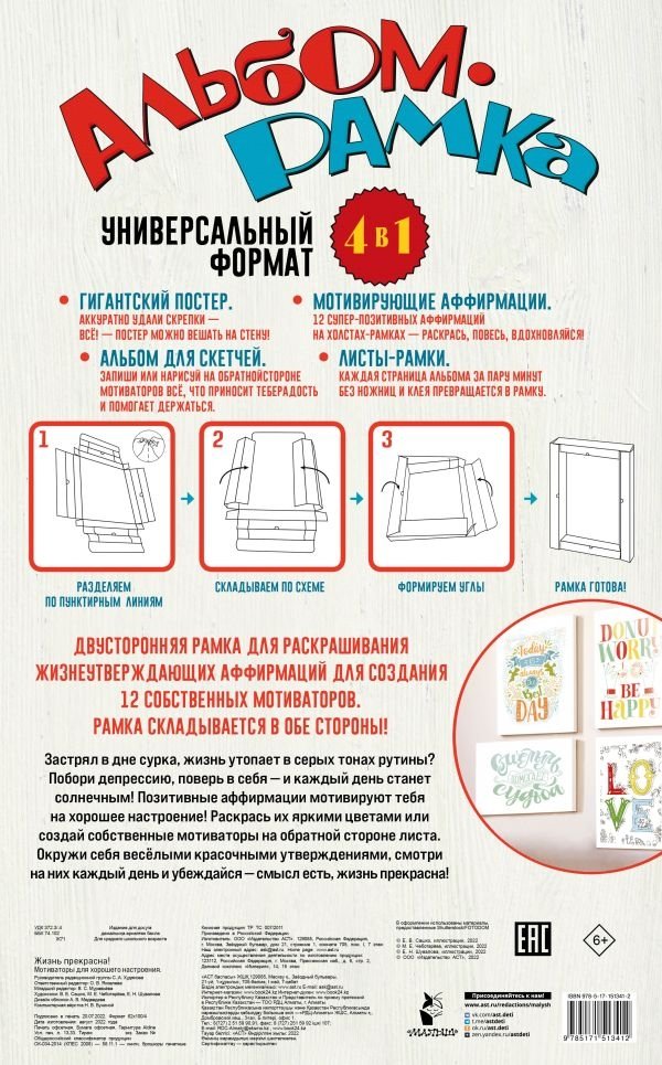 Двусторонняя рамка для раскрашивания жизнеутверждающих аффирмаций или для создания 12 собственных мотиваторов. Рамка складывается в обе стороны!