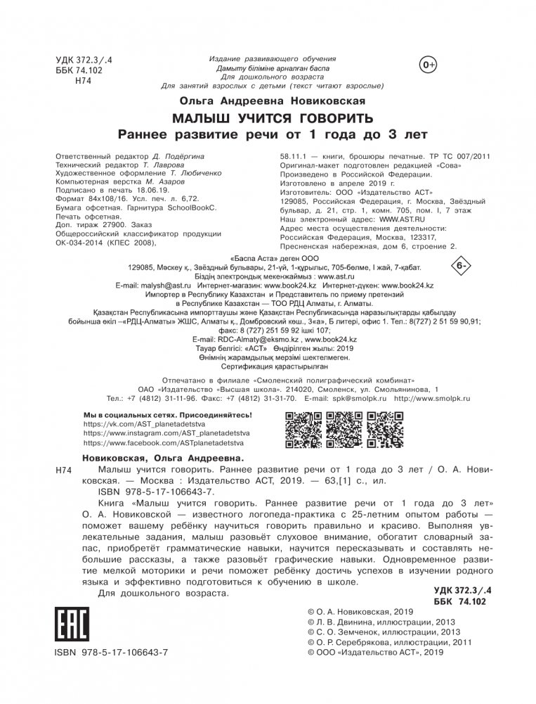 Книга О. А. Новиковской "Малыш учится говорить. Раннее развитие речи от 1 года до 3 лет" — известного логопеда-практика с 25-летним опытом работы — поможет вашему ребёнку научиться говорить правильно и красиво.