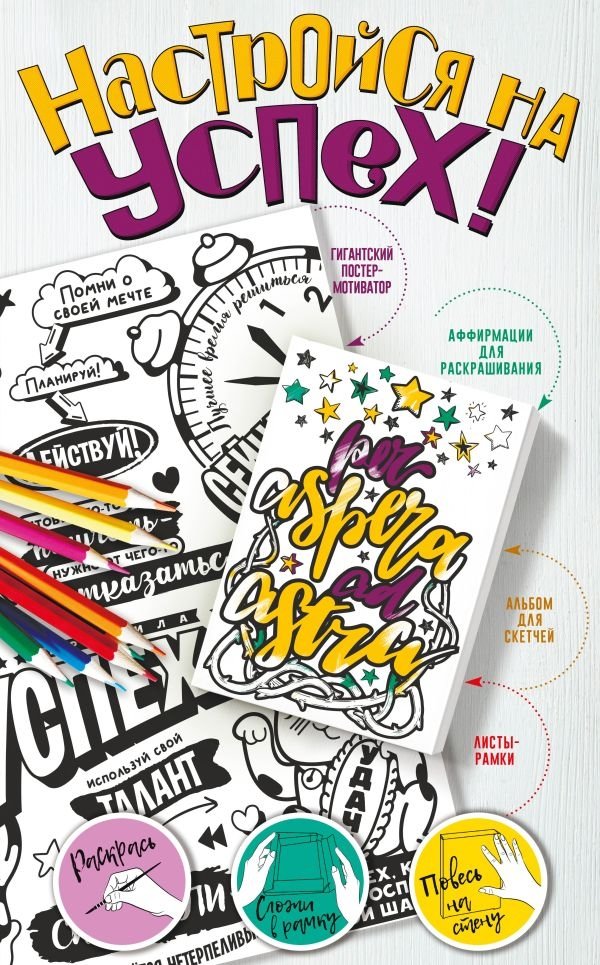 Превращай мечты в цели! Рисуй свои желания, раскрашивай мотиваторы, наполняя своей энергией. Вдохновляйся! Повесь свои заряженные позитивом работы на стену, смотри на них каждый день — настраивайся на победу!