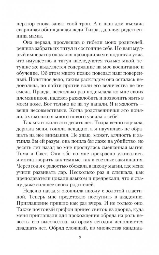 Кто бы мог предположить, что сирота попадёт в список невест принца, я ведь только успела получить приглашение в магическую академию, куда так стремилась. И уж точно я не могла предположить, что источник императорского дома выберет меня для прохождения отбора. Но дальше – больше: мероприятие кто-то вознамерился сорвать, устроив покушение не только на его высочество, но и на его невест! (К слову, одна из них моя подруга, вместе с которой мы и влезли туда, куда не должны, за что едва не поплатились.) Но настоящее потрясение я испытала, узнав, что ни у принца, ни у меня, оказывается, и выбора-то никакого не было, всё было предопределено заранее.