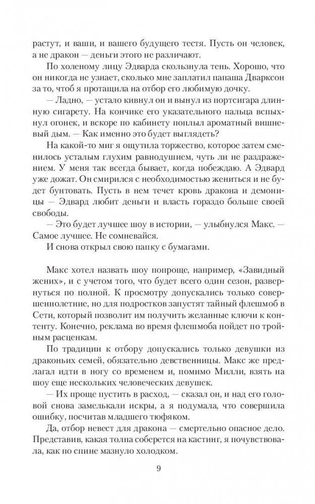 Эдвард Финниган - наследник крупнейшей драконьей династии, который должен жениться по приказу отца. И я, Инга Шуман, устраиваю для него телешоу с отбором невест. Но что делать, если жених не хочет заключать брак, невеста не хочет замуж, а на отборе начинаются интриги и убийства? Неужели надежда для всех только в любви?