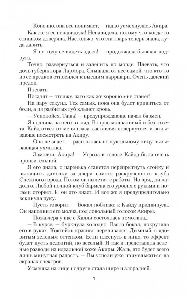 Нарршари - высшие парящие. Они наш закон. Нарршари подчиняют одним взглядом. Мой мир принадлежит им. Оскорбить нарршари - подписать себе смертный приговор. Я умудрилась это сделать. Я - Таша Рахи.Еще вчера у меня было все. Вера в счастливое завтра, любимый мужчина, лучшая подруга и проект, благодаря которому я могла получить лицензию на светлую и обеспеченную жизнь.Сегодня я потеряла все. Любимого мужчину, подругу. И надежду хоть на какое-то будущее. Но я не привыкла сдаваться. И заключила пари. На кону теперь не только моя честь, моя карьера и право выжить в городе вечного снега, на кону - любовь и, возможно, я сама.