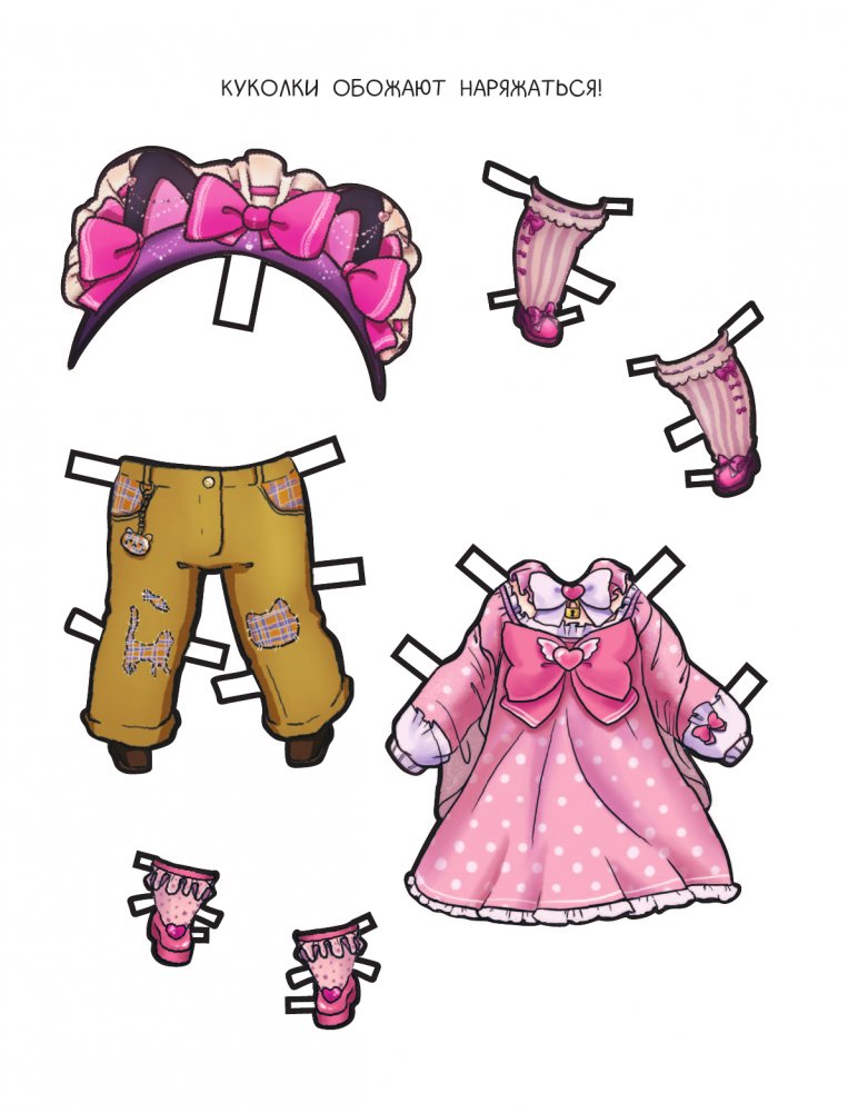 Очаровательные куколки обожают наряжаться! Аккуратно вырежи по контуру двух куколок, а затем всю одежду и аксессуары. Постарайся собрать яркие образы для стильных анимешек!