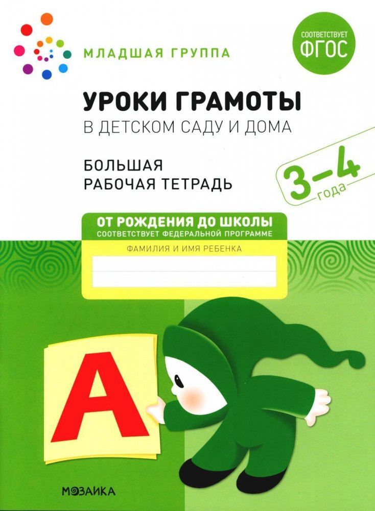 Уроки грамоты в детском саду и дома. Большая рабочая тетрадь. 3-4 года