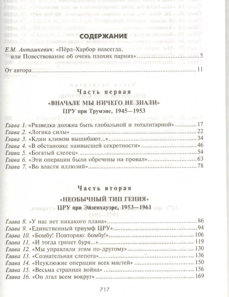 Провокационная, весьма поучительная и чрезвычайно интересная книга лауреата Пулитцеровской премии Тима Вейнера посвящена 60-летней истории ЦРУ. В основу исследования легли тысячи архивных документов, интервью с действующими агентами, ветеранами и бывшими руководителями главного американского шпионского ведомства. Автор без прикрас описывает военные операции ЦРУ на Кубе, во Вьетнаме, Афганистане, Ираке и множестве других стран, раскрывает тайные стороны отношений двух великих держав — СССР и США — в период холодной войны. Повествует об ошибках управления внутри ведомства, бездумном распылении колоссального бюджета и о том, как просчеты ЦРУ повлияли на состояние национальной безопасности США, следствием которых стала трагедия 11 сентября 2001 года. Предупреждает об опасной неспособности видеть мир таким, какой он есть, что недопустимо при угрозе мирового терроризма.