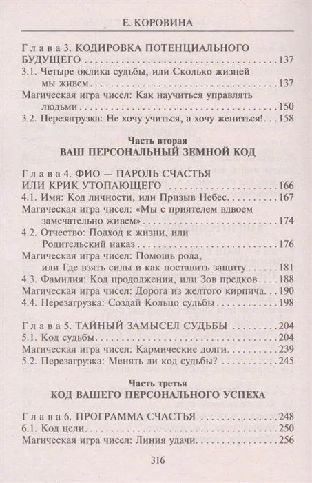 Новая книга Елены Коровиной о магической нумерологии — уникальное практическое руководство, которое поможет понять самого себя и окружающих, изменить жизнь к лучшему, достичь успеха и богатства, жить в радости и комфорте. Вы найдете свои личные счастливые числа, которые помогут вам в любой ситуации, вы поймете, как можно, просто работая с числами, стать управителем своей жизни, а самое главное — вы научитесь расшифровывать и вскрывать коды своей судьбы, а затем перепрограммировать их, тем самым перепрограммируя свою старую судьбу на новую — ту, которая вам необходима. Заманчиво? Тогда читайте и не откладывайте счастье на потом!