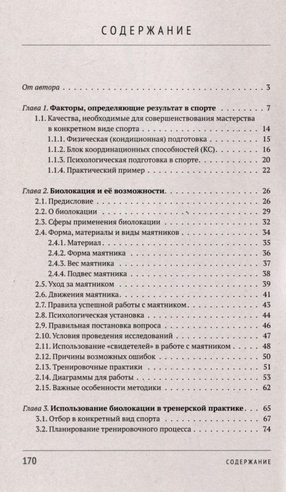 Эта книга - необычный и увлекательный эксперимент. Впервые предпринята попытка применить древнюю практику - биолокацию - для создания оригинальной методики в тренерской деятельности. Предлагается с её помощью более эффективно решать многие задачи тренировочного процесса: это и проблемы отбора, и задачи планирования, и осуществление комплексного контроля, и ряд других важных функций в работе тренера. Представленная здесь методика универсальна - она одинаково удобна для любого вида спорта и для любого уровня квалификации тренеров и спортсменов. Она легко осваивается и занимает немного времени. Более того, методы, описанные в книге, можно также широко применять во всех направлениях повседневной жизнедеятельности человека. Автор ни в коем случае не призывает заменить традиционную теорию спорта на нечто иное. Наоборот, он убеждён, что спортивную науку надо максимально совершенствовать и развивать.