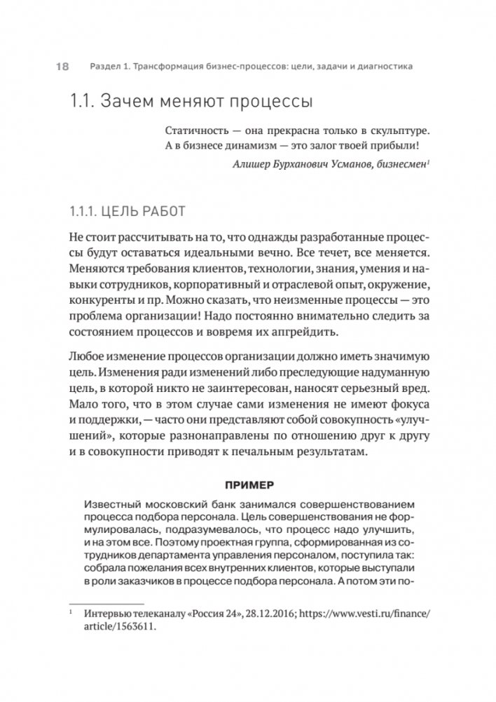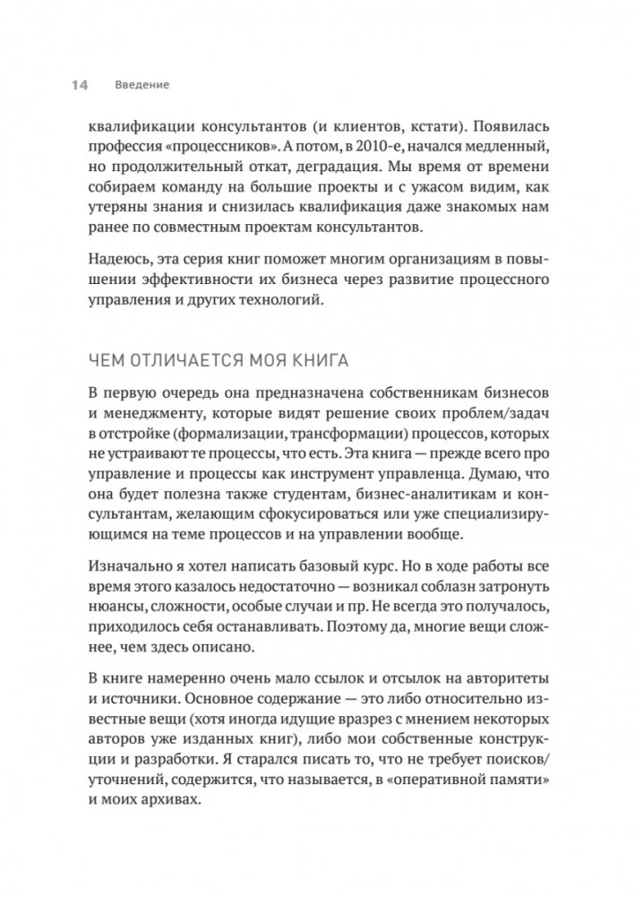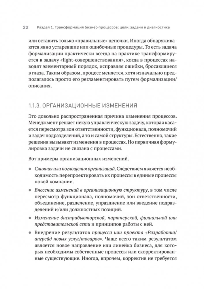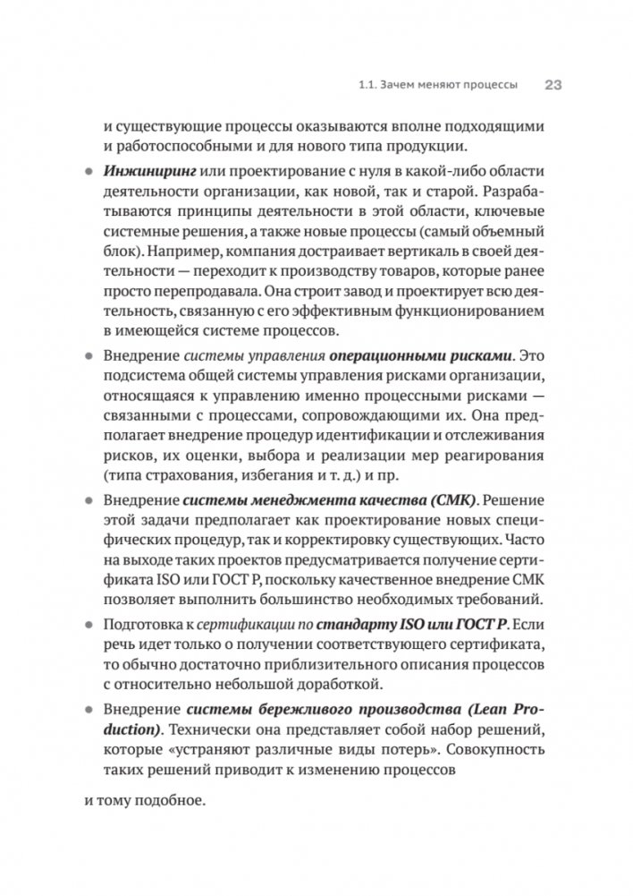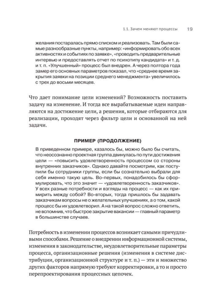 Издание содержит теорию изменения (трансформации) процессов и описание вопросов управления ими, сопровождающуюся примерами реальных проектов и компаний, упражнениями для применения материала на практике, а также пошаговой инструкцией для реализации процессного подхода в организации. Основной фокус книги: методы проведения диагностики, анализа, совершенствования и реинжиниринга процессов, их внедрение и функционирование процессной организации. Обзор методов анализа процессов – наиболее полный из всего, что ранее было опубликовано по этому вопросу.