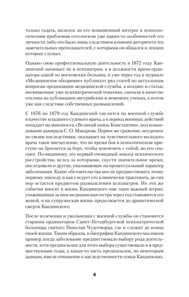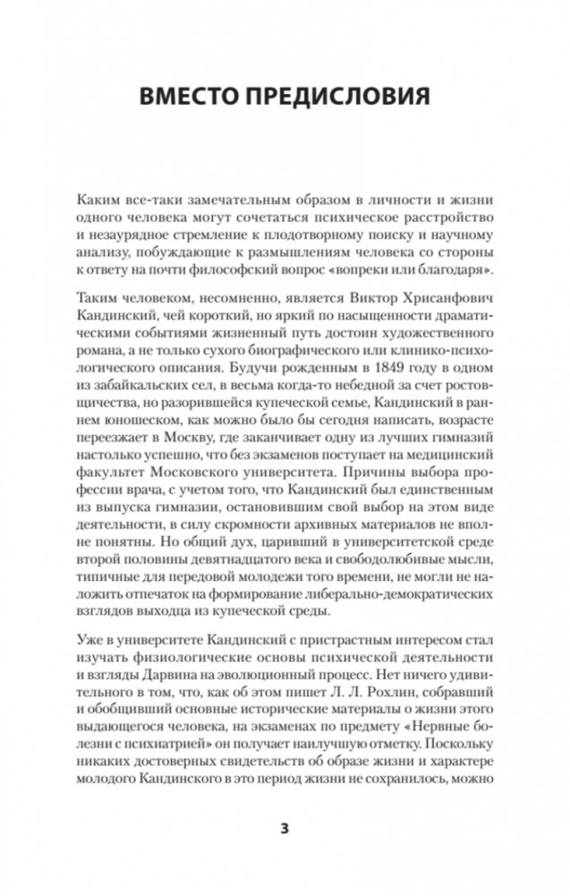 К сожалению, книгу постигла такая же непростая судьба, как и ее автора. В 1885 г. работа была удостоена премии им. врача Филиппова Санкт-Петербургского общества психиатров и должна была быть издана на средства этого общества, что «за отсутствием оных» так и не было сделано. Тем не менее она вышла на немецком языке в Берлине. И только после смерти Кандинского, благодаря стараниям его жены, монография была опубликована на родине. 60 лет спустя, в 1952 г., увидело свет второе издание книги, однако ее текст был изменен советским редактором, исключившим те места, в которых автор высказывал приверженность взглядам западных философов и психиатров. Понадобилось еще 50 лет, чтобы работа вышла в своем первозданном виде, и произошло это в 2001 г. Настоящее издание публикуется в соответствии с книгой 1890 г.