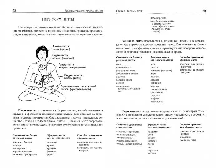 Книга появилась как результат двадцатипятилетнего опыта применения ароматерапии и аюрведы ее авторами. В ней последовательно излагаются принципы аюрведы и ароматерапии. Подробно описаны аюрведические свойства эфирных масел и способы их применения.