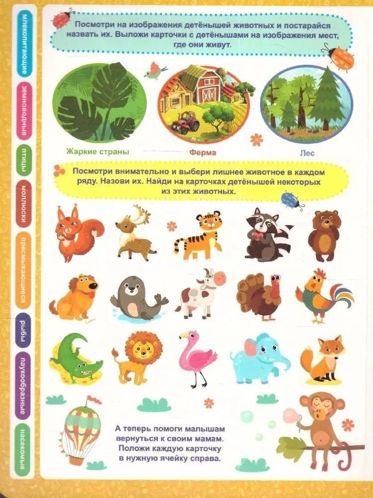 Книга-лото "Мир животных" - это развивающее пособие для детей, которое разработано по методике Виктории Белых - педагога-психолога с 25-летним стажем работы с детьми. Занятия по этому пособию гарантируют максимальный прогресс в развитии вашего малыша. В книге 8 страниц с увлекательными заданиями и 48 плотных съёмных карточек с удобным отверстием для детских пальчиков. Под каждой карточкой спрятана картинка, которая играет ключевую роль в выполнении заданий. С помощью книги "Мир животных" ребёнок познакомится с разными видами живых существ, с их миром и образом жизни. Страницы толщиной в 2 мм выполнены из многослойного ламинированного картона, что позволит детально изучать и повторять материал огромное количество раз без ущерба для качества книги. Совет родителям: перед первым использованием достаньте все карточки и удалите защитные клапаны.