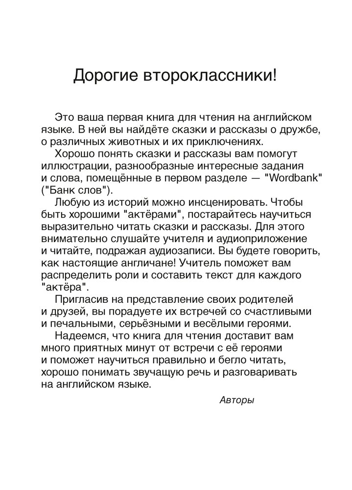 Пособие содержит сказки и рассказы о дружбе, о различных животных и их приключениях на английском языке. С помощью данной книги учащиеся научатся правильно читать, хорошо понимать звучащую речь и разговаривать на английском языке.