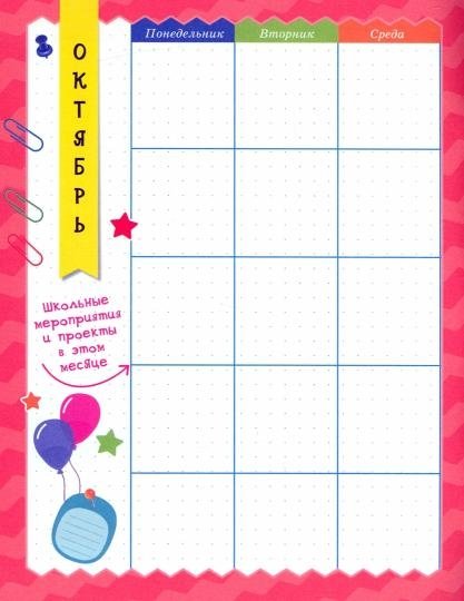 Делу время, потехе — час! А чтобы ничего не забыть — надо обязательно записать. В планере-точкабуке для школьника есть странички с расписанием уроков, списком литературы на лето, планированием дел на каждый месяц и ещё много интересного. Современная разметка в точку вместо скучных клеток и линий, весёлое оформление каждой страницы обязательно понравится каждому школьнику.