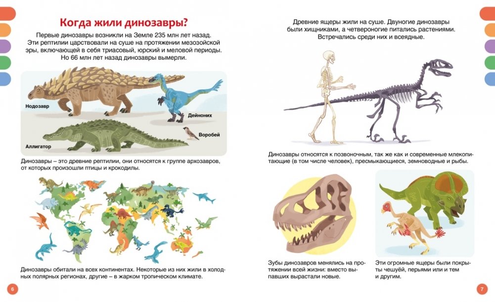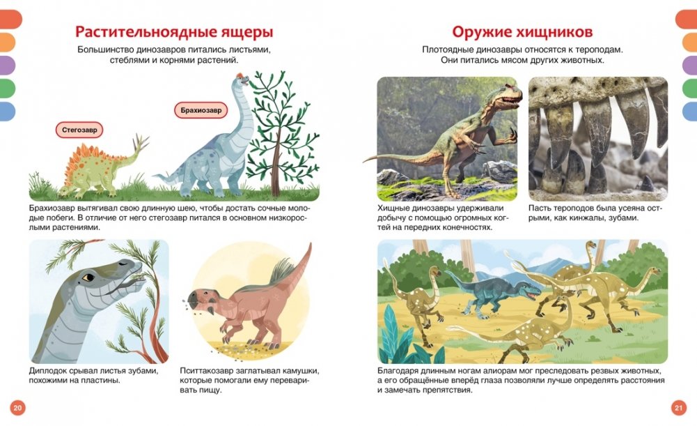 В этой книге представлены не только самые знаменитые, но также недавно открытые динозавры – грозные хищники, мирные гиганты и юркие охотники. У одних были острые клыки и огромные когти, у других – необычные выросты на голове и теле, а у некоторых даже имелся клюв или яркое оперение! Юные читатели не только узнают всё о древних ящерах, но также познакомятся с животными, которые обитали на Земле вместе с динозаврами. В книгах серии – только самая актуальная информация и самые современные иллюстрации! И это ещё не всё: в конце каждой книжки собраны увлекательные задания и игры, которые помогут весело провести время и повторить изученное.