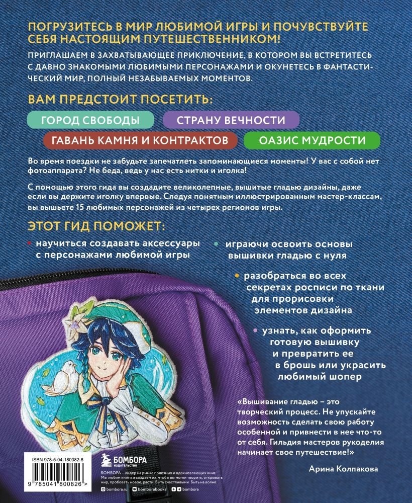 Чтобы запечатлеть все запоминающиеся моменты, фотоаппарат вам не понадобится — достаточно будет лишь нитки и иголки! С помощью этой книги вы создадите великолепные вышитые гладью дизайны, даже если вы держите иголку впервые. Следуя понятным иллюстрированным мастер-классам, вы вышьете 15 любимых персонажей из четырех регионов игры Геншин.