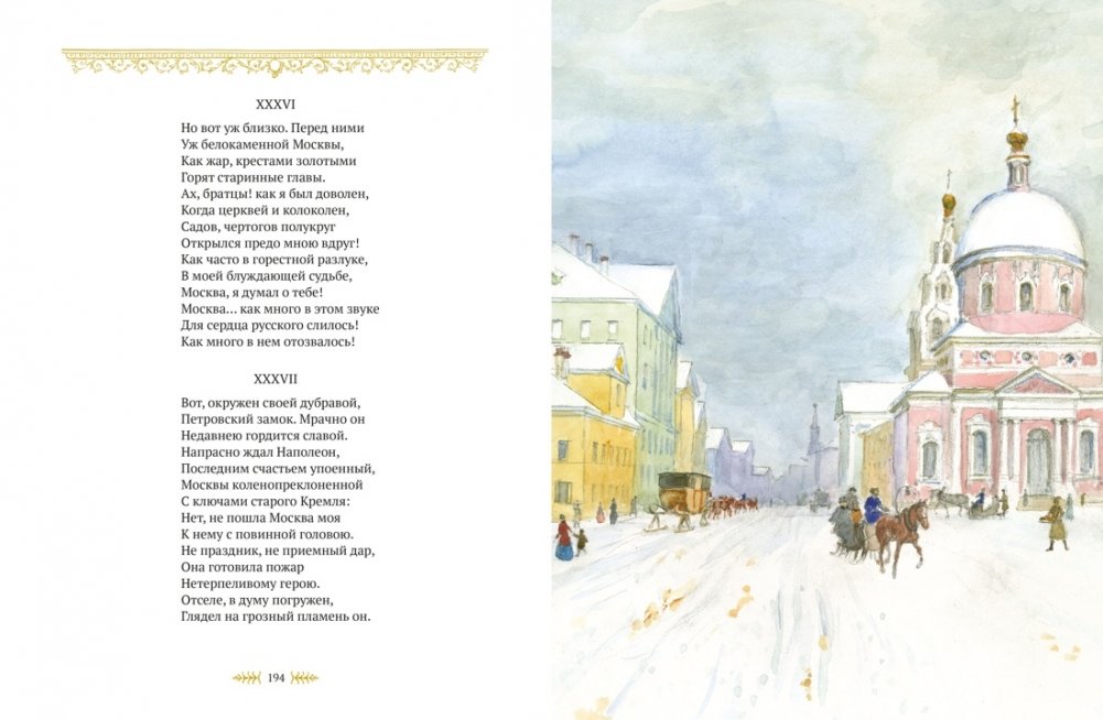 Роман публикуется с иллюстрациями прославленного петербургского художника Алексея Рейпольского, за свою карьеру оформившего уже более 70 книжных изданий. Профессиональный живописец, Рейпольский известен не только глубоким пониманием каждого литературного произведения, с которым имеет дело, но и точностью изображения мельчайших деталей. Работа над иллюстрациями к «Евгению Онегину» велась в течение года. Написанные в мягких пастельных тонах сюжеты хорошо показывают переход А. С. Пушкина от романтизма, особенно заметного в первых главах, к реализму и заставляют героев произведения буквально оживать перед читательским взором. Издание, достойное места в любой коллекции.